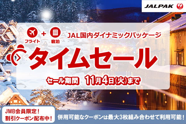 ※上記ホームページよりJALダイナミックパッケージ(国内・海外)、海外ツアーをお申し込みのお客さまに限ります。
