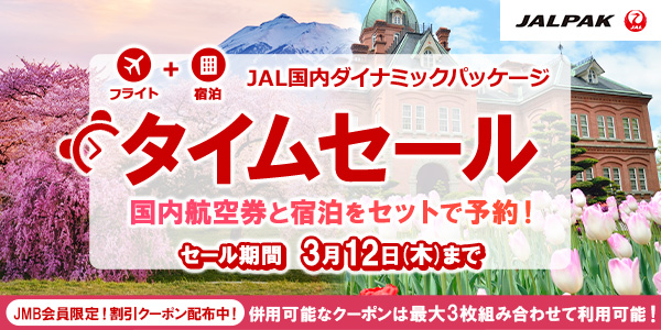 ※上記ホームページよりJALダイナミックパッケージ(国内・海外)、海外ツアーをお申し込みのお客さまに限ります。