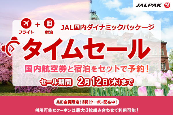 ※上記ホームページよりJALダイナミックパッケージ(国内・海外)、海外ツアーをお申し込みのお客さまに限ります。