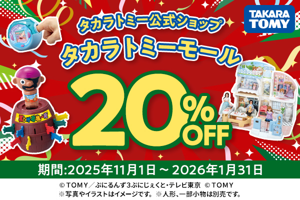 ※「タカラトミーアーツ公式オンラインショップ e組」、およびタカラトミー楽天市場、Yahoo!ショッピング店、実店舗(プラレールショップ・トミカショップ・キディランド)でのご購入は優待対象外です。