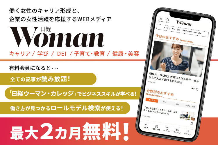 日経ウーマン Webは、働く女性のキャリア形成と、企業の女性活躍・多様性推進を応援する会員制ウェブメディアです。
