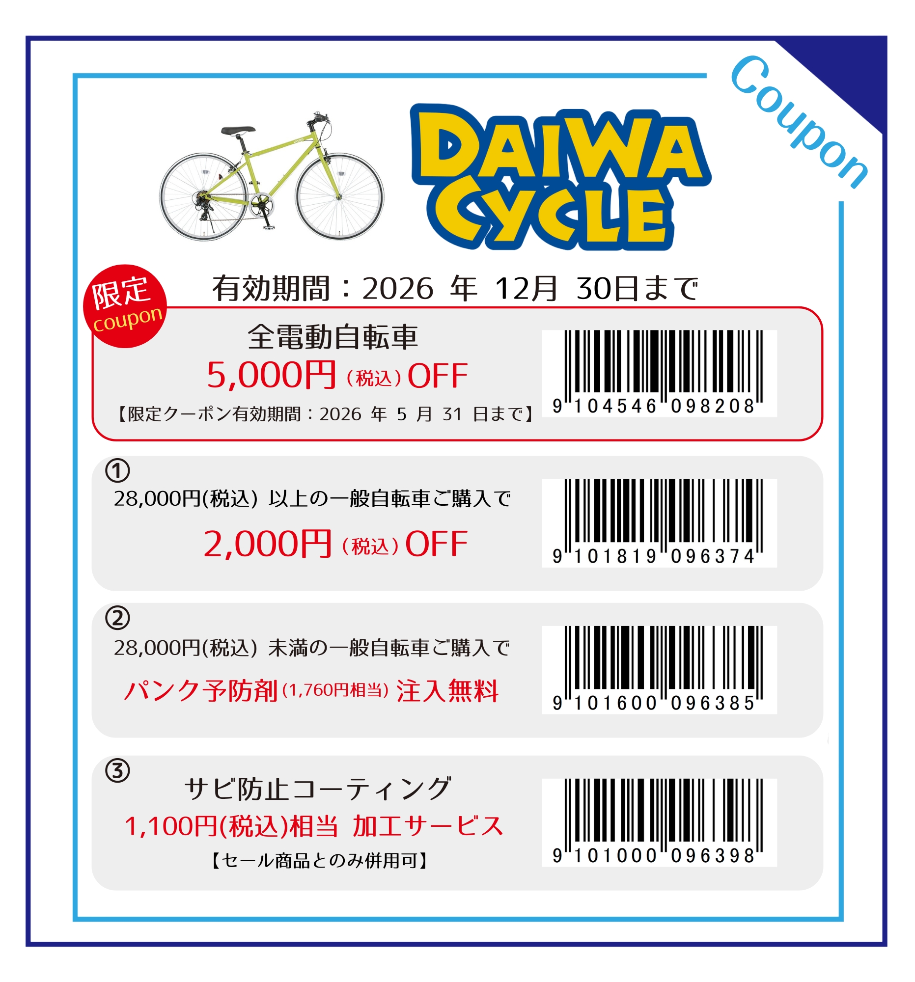 ※実店舗で自転車1台購入につき本券1枚有効。