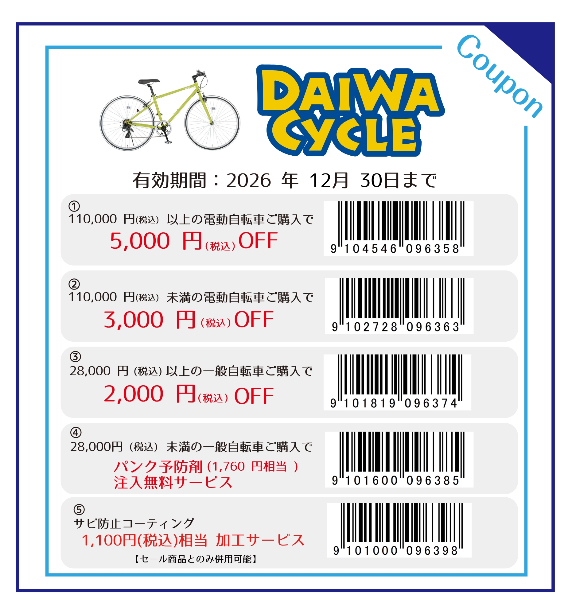 ③28,000円(税込)以上の一般自転車ご購入で2,000円(税込)OFF