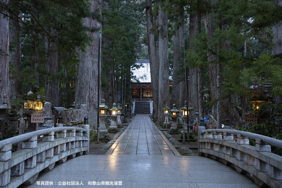 和歌山県の北東、奈良県との県境に、空から見るとまるで蓮の花が咲いたような地形をした盆地があります。標高1,000メートルほどの八つの峰に囲まれた宗教都市、約1200年前に弘法大師‧空海により開かれた 真言密教の「天空の聖地」。 神聖な空気に満ちる特別な3日間の旅に、ぜひお出かけください。