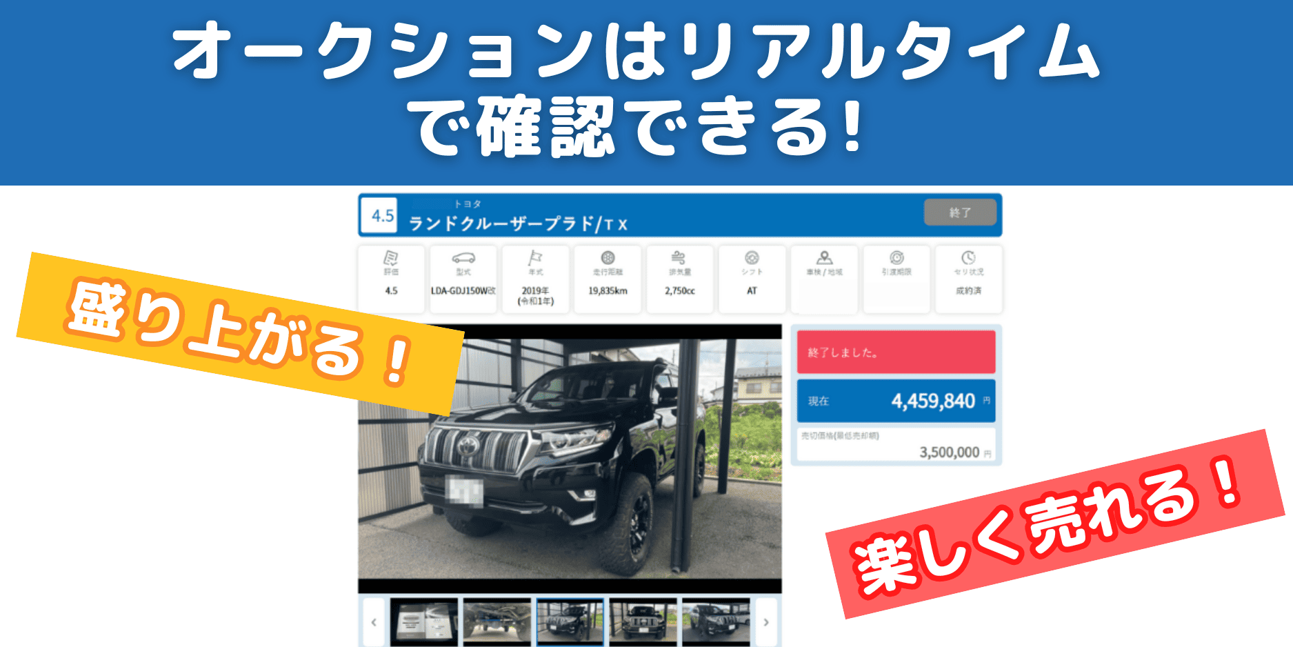 オークション出品手続きはセルカが行い、開始後は車の買い手が競り合って価格が決まります。
