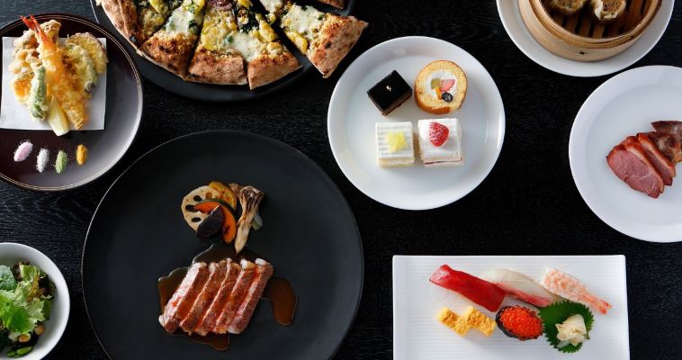 ステージキッチンから提供される和・洋・中、そしてスイーツの多彩な料理の数々と、都心の夜景や晴れた日には富士山も一望できる360°パノラマの眺望が魅力のビュッフェダイニング。なかでも職人が握る寿司、目の前で焼き上げる鉄板焼、季節の魚や旬の野菜を使用した天麩羅に加え、ホテルニューオータニのシグネチャースイーツ「スーパーシリーズ」やピエール・エルメ・パリのスイーツもお好きなだけお愉しみいただけます。