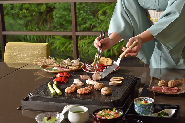 深山幽谷の名残が漂う椿山荘庭園の奥中に、ひっそりとその居を構える「木春堂」。樹齢500年の御神木に見守られ、爽やかな風のそよぎや虫の音が聴こえてくる、幽玄な自然美に包まれた石焼会席処です。都心にいることさえ忘れてしまいそうなこの空間で、大切な方とのお時間をお過ごしくださいませ。屋号の“木”と“春”を足し合わせたら“椿”。そんな木春堂では、ホテル椿山荘東京のオリジナリティ溢れる伝統料理「石焼会席」をお楽しみいただけます。